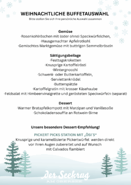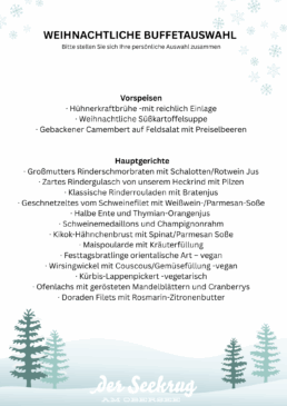 Wir laden Sie herzlich ein, die festlichste Zeit des Jahres in unserer gemütlichen Atmosphäre zu genießen. Bei uns erwarten Sie nicht nur Leckereien aus der SEEKRUG Küche, sondern auch wärmende Getränke und eine hyggelige Stimmung.