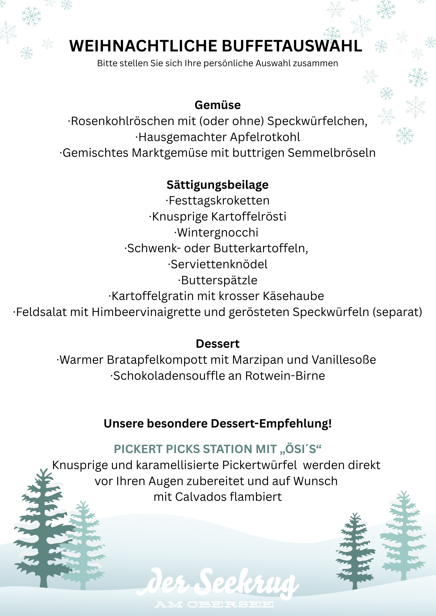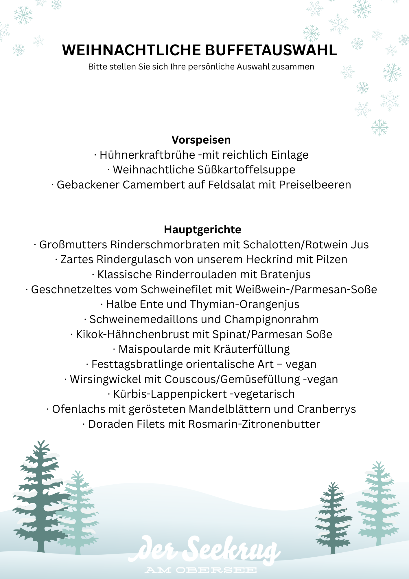 ✨ Die magische Weihnachtszeit im SEEKRUG steht vor der Tür! 🎄✨ Zeit, die Lichter anzuzünden, 🕯️ gemütliche Stunden mit den Liebsten zu verbringen ❤️ und ein wenig zur Ruhe zu kommen. 🎅 Ob deftige Leckereien 🥘, warme Getränke ☕ oder das Beisammensein in unserer gemütlichen Winterwelt ⛄️ – Weihnachten ist ein Fest der Freude und der Dankbarkeit. 🎁